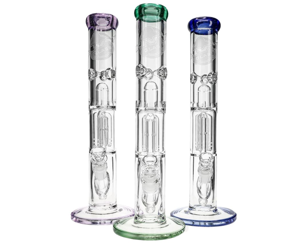 The lineup features a diverse array of beakers, straight tubes, and bubble bases that incorporate fuming, ice pinches, and diffused downstems for an exceptionally smooth experience.